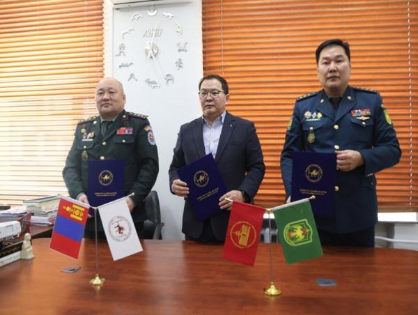 Батлан хамгаалахын эрдэм шинжилгээний хүрээлэнгийн захирал доктор (Ph.D), дэд профессор, хурандаа Д.Содномцог, Шинжлэх Ухааны Академийн Археологийн хүрээлэнгийн захирал доктор (Ph.D), дэд профессор Г.Эрэгзэн, Хилийн цэргийн Хил судлалын хүрээлэнгийн захирал, доктор (Ph.D), хурандаа А.Ганбилэг нар хамтран ажиллах гэрээнд гарын үсэг зурсан байна.