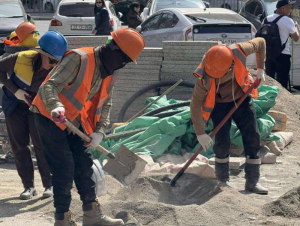 Энэ үеэр “Сант-Өндөр” ХХК-ийн инженер Т.Батдэлгэр “Зүүн 4 замаас Баруун 4 зам хүртэл нийт 13 мянга орчим ам.метр талбайд тавдугаар сарын сүүлээс эхлэн явган хүний замын ажил гүйцэтгэж байна. Өнөөдрийн байдлаар 1000 гаруй ам.метр талбайд байгалийн чулуун зам тавьсан. Цахилгаан, гадна холбооны ажилтайгаа нийлээд өдөрт 16-21 хүний бүрэлдэхүүнтэй ажиллаж байна” гэв.