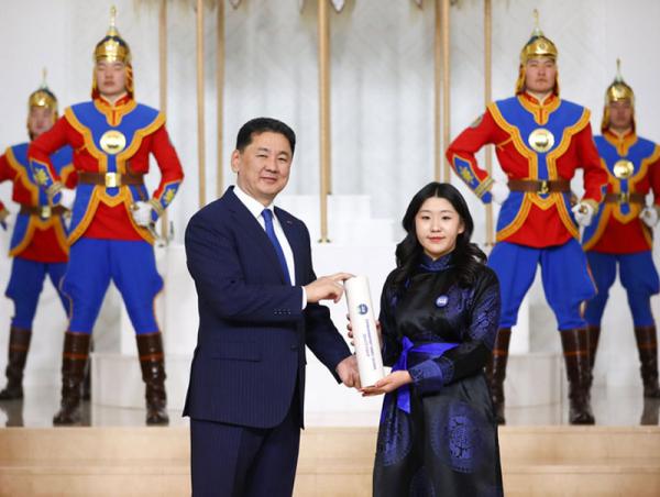 Тэтгэлэгт хөтөлбөрийн эзэд болж, эх орондоо бэлтгэл хөтөлбөрт суралцаж байгаа оюутнуудад Ерөнхийлөгч У.Хүрэлсүх сурлагын өндөр амжилт хүсэж, захиа, даалгавар гардууллаа.