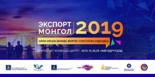 “Экспорт Монгол-2019” олон улсын бизнес форум, үзэсгэлэн худалдаанд 50 гаруй гадны зочид төлөөлөгчид, 100 гаруй төрийн болон төрийн бус байгууллага мэргэжлийн холбоод, 800 гаруй аж ахуйн нэгж бизнесийн төлөөлөл бүхий 1000 орчим байгууллага хувь хүн оролцох юм байна.
