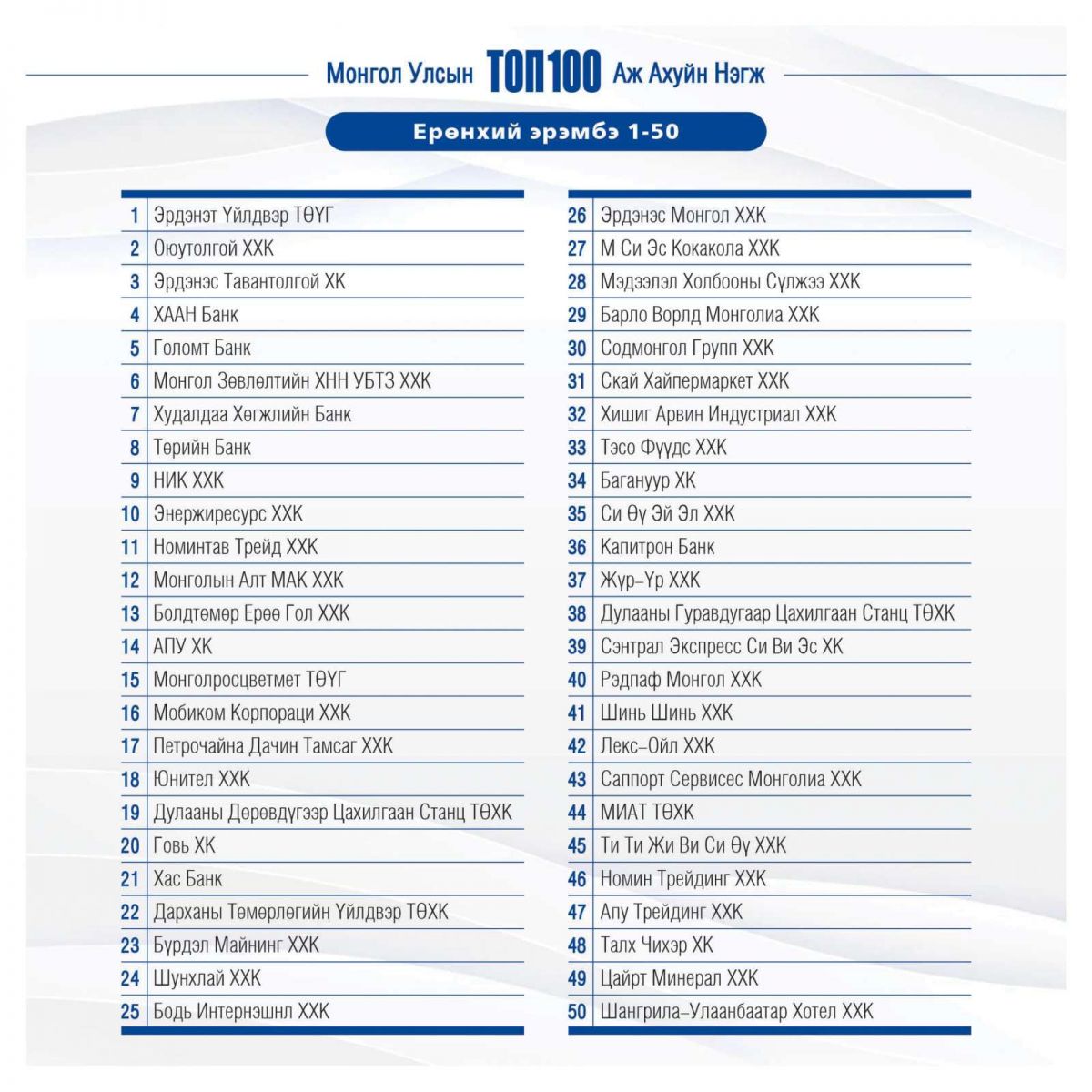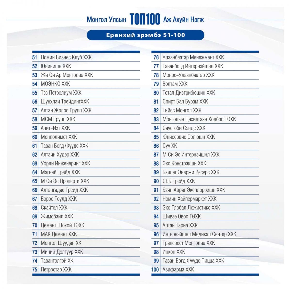 Монгол Улсын ТОП-100 аж ахуйн нэгжийг танилцуулж байна