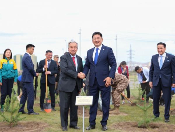 Ерөнхийлөгч У.Хүрэлсүх, НҮБ-ын Ерөнхий нарийн бичгийн дарга Антонио Гутерреш нар мод тарилаа