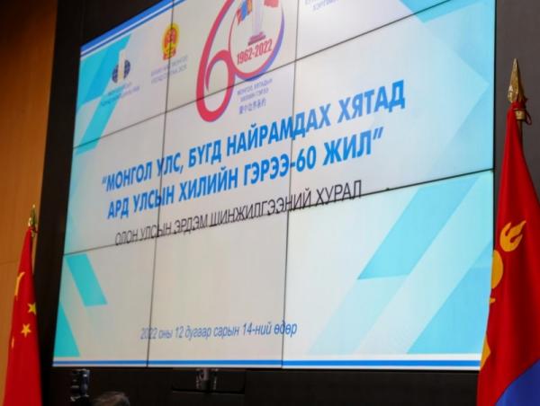 Монгол Улсын өмнөд хил бүрэлдэн тогтсон түүхт 60 жилийн ой 2022 онд тохиож буйтай холбогдуулан Монгол Улсын Гадаад харилцааны яам, Хууль зүй, дотоод хэргийн яам, Хил хамгаалах ерөнхий газар хамтран “Монгол Улс, БНХАУ-ын Хилийн гэрээ-60 жил” эрдэм шинжилгээний хурлыг 12 дугаар сарын 14-ний өдөр Гадаад харилцааны яаманд зохион байгуулав.