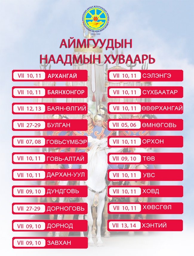 2019 оны аймгуудын "Үндэсний баяр наадам"-ын ХУВААРЬ