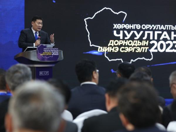 Монгол Улсын Ерөнхий сайд Л.Оюун-Эрдэнэ “Дорнодын шинэ сэргэлт” хөрөнгө оруулалтын чуулганд оролцож, үг хэллээ. Тэрбээр Засгийн газрын бодлого хөтөлбөртэй уялдуулан, бүс нутгийн хөгжлөө хэлэлцэж, хөрөнгө оруулалтаа нэмэгдүүлэхээр чуулган зохион байгуулж буй Дорнод аймаг болон зүүн аймгуудын удирдлагуудад талархал илэрхийлээд Шинэ сэргэлтийн бодлогын зарим үр дүнгээс дурдлаа. Цар тахлын үед -4.7 хувийн уналттай байсан манай улсын эдийн засаг 2021 онд 1.6 хувь, 2022 онд 4.8 хувь, 2023 оны хоёрдугаар улиралд 6.4 хувь болж нэмэгдсэн. Одоогийн байдлаар нэг хүнд ногдох ДНБ 5033 ам.доллар хүрсэн. Шинэ сэргэлтийн бодлого цаашид тогтвортой хэрэгжвэл нэг хүнд ногдох ДНБ 2027, 2028 онд 10 мянган ам.долларт хүрэх төлөвтэй байна гэв. Мөн улсын хэмжээнд бие дааж төсвөө бүрдүүлдэг зургаан аймгийн нэг нь Дорнод. Тус аймгийн Дотоодын нийт бүтээгдэхүүн 1.2 их наяд, эдийн засгийн өсөлт 14 хувь буюу давхар өсөлттэй явж байгааг онцлов.