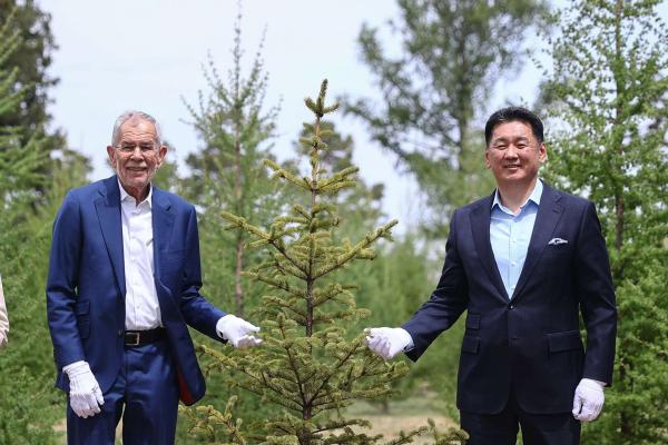 Монгол Улсын Ерөнхийлөгч Ухнаагийн Хүрэлсүх, гэргий Лувсандоржийн Болорцэцэг, Австри Улсын Ерөнхийлөгч Александр Ван дэр Беллен, түүний гэргий Дорис Шмидауэр нар уур амьсгалын өөрчлөлт, цөлжилт зэрэг дэлхий нийтэд тулгамдаж буй сорилтыг даван туулах хүч чармайлтад хувь нэмрээ оруулахыг бэлгэдэж Их тэнгэр цогцолборт дурсгалын мод тарилаа.