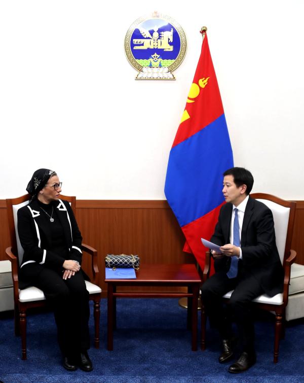 Гадаад харилцааны дэд сайд Г.Амартүвшин 2026 оны хоёрдугаар сарын 3-ны өдөр Цөлжилттэй тэмцэх тухай НҮБ-ын конвенцын Гүйцэтгэх нарийн бичгийн дарга Ясмин Фоуадыг хүлээн авч уулзав.