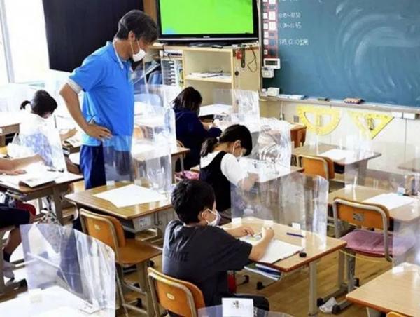 Тухайлбал, Точиги мужийн Ояама хотын Кину дунд сургууль нь сурагчдаа бүлэг бүлгээр 2020 оны 5 дугаар сарын 15-ны өдрөөс хүлээн авч эхэлсэн. Өнгөрсөн Даваа гарагт сургуулийн нийт сурагчдын тал хувь нь буюу 124 сурагч сургуульдаа ирсэн. Агаар дуслын замаар халдварыг тараахгүйн тулд сургуулийн багш, ажилчид нь сурагчдын ширээнд гялгар хаалт байрлуулж, бүх талд нь хоосон ширээ байхаар сурагчдыг суулгаж байгаа юм байна.