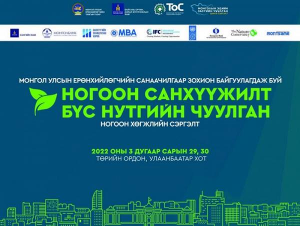 Монгол Улсын Ерөнхийлөгчийн ивээл дор 2022 оны 03 дугаар сарын 29-30-ны өдөр Төрийн ордонд “Ногоон санхүүжилт-Бүс нутгийн чуулган”-ыг зохион байгуулах гэж байна.